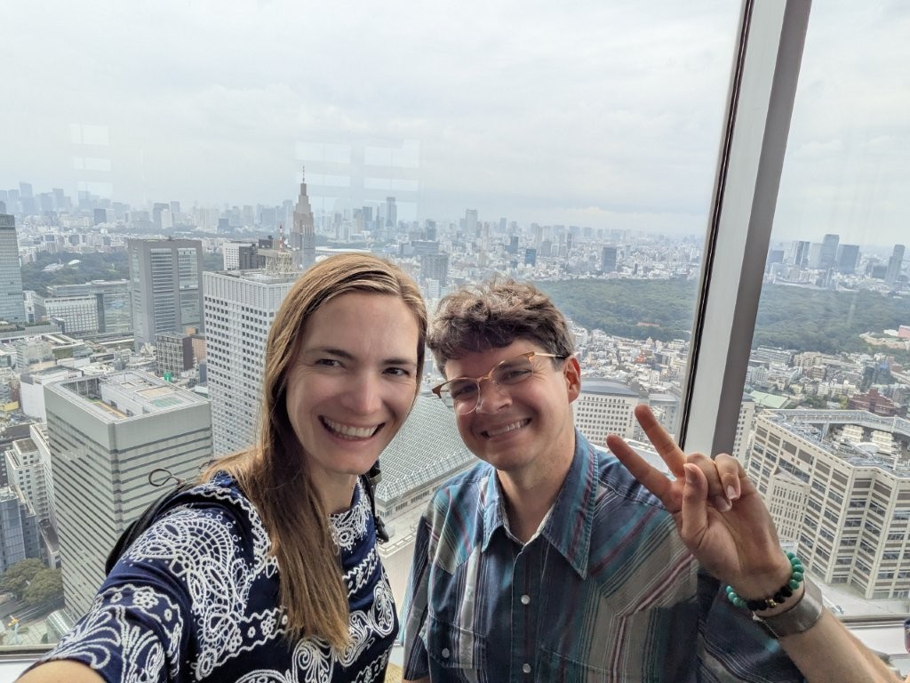 After the Meiji Shrine we continued walking north towards the government building which has a free observation deck on the 45th floor. It was a nice relaxing space, although views weren’t as nice as they could have been with the off and on rain we were experiencing. There are actually two towers and we randomly chose one, I’m assuming they are similar at the top, but with the overcast views we didn’t think it was worth our time to ride up the other elevator. We did hunt down several stamps on the ground floor and the tower we did go up in this building for our souvenir stamp book though!