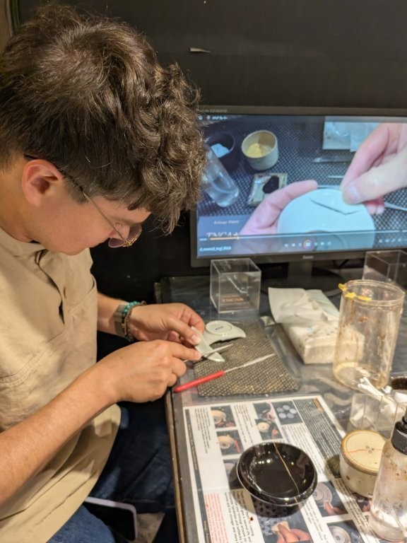 After dinner we had booked a crafting class to learn about kintsugi, a traditional Japanese art repairing broken pottery by embracing and highlighting the beauty of the broken parts. This is typically done with gold leafed lacquer highlighting the cracks. We got to try our hand at it with some small plates they provided. Our class was a non-traditional interpretation of the process which used modern adhesives to speed up the process while still highlighting the lacquer and gold powder final repair.
