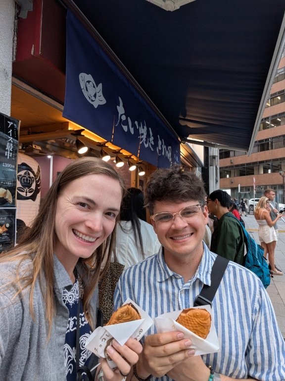 Wanting to make sure we tried as much of the street goodies as we could, while abroad we also grabbed some takoyaki (tempura octopus spheres) and an ice cream crepe to split.