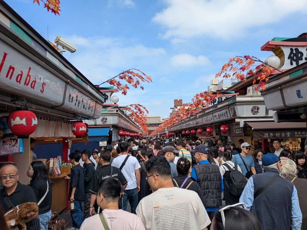 Next we made our way towards the Sensoji Temple. It was massive and full of all sorts of people. This temple had the most market stalls between the gate and the temple compared to any of the other shrines we went to. It was fun to see the fall leaf decor they had put up as well.