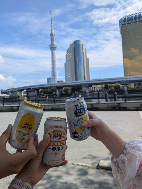 After that we grabbed some drinks and made our way to the Sumda River so we could feel like real locals strolling about. Kanpai! (Cheers in Japanese).