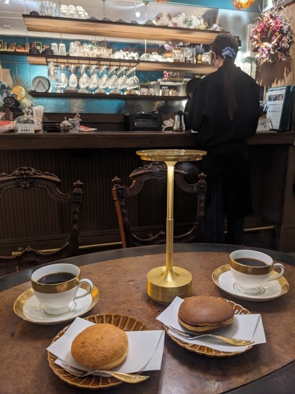 After getting our fill on cutesy shops near the sky tree we said our goodbyes so Sara could get back to her family. We explored the area a little on our own and then went down to Jimbocho next. Apparently they were voted the world’s coolest neighborhood in 2025. But when we stepped out of the station it felt like a sleepy corner of the city. We were maybe in the afternoon lull? Feeling tired ourselves, we decided to hit up a cute cafe with stellar book vibes. Once caffeinated we checked out some of the book shops, several had walls of book shelves outside, Tokyo’s book town felt a lot more organized than Busan’s.