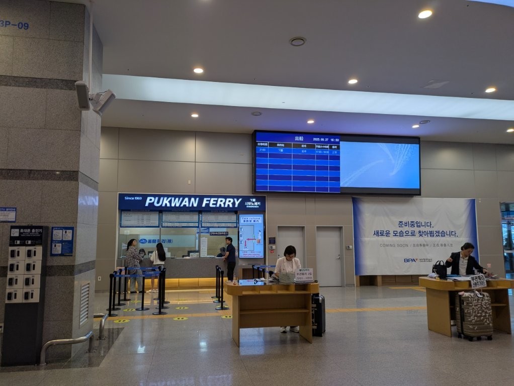 The website, and our booking reservation was under “Kampu”, but the only open desk said “Pukwan”. They had the same logo, just facing opposite directions, maybe a Japan vs Korea thing? Either way it was the only desk open, so I suppose we couldn’t mess it up, but if you are leaving on a day the Camellia or other ferries are operating it’s definitely something to be aware of!