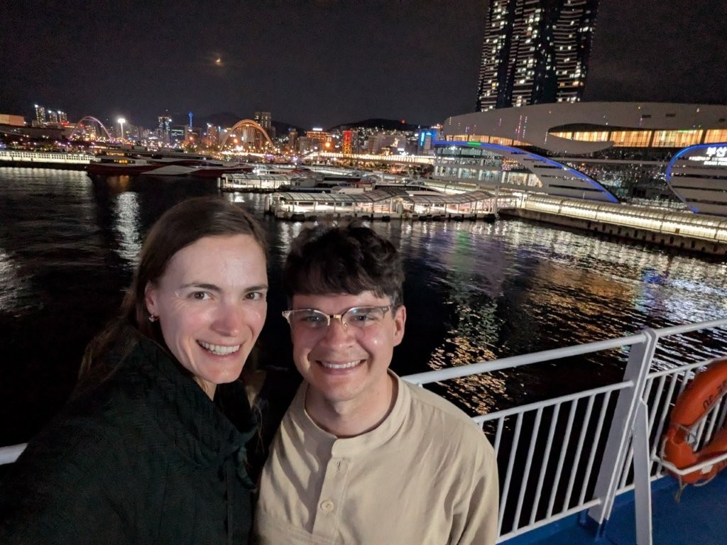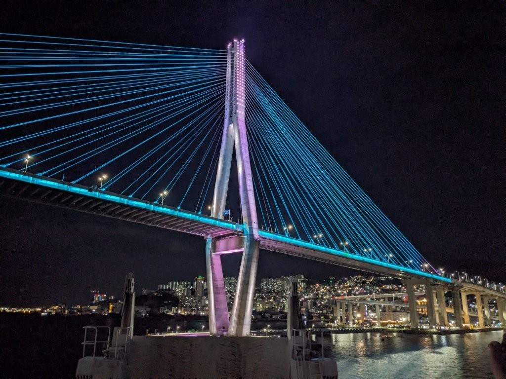 After eating we explored the boat a little and were thankful we weren’t in the second class cabins near the engine room, but as I mentioned earlier, I was feeling really tired so I ended up calling it a night and going to sleep pretty early. Andrew opted to use the onboard “grand bath” and after bathing he explored some more. The boat didn’t actually leave the dock until 9pm, and I was in bed before then, but Andrew went out on deck to watch us go under the famous Busanhangdae bridge which they light up at night. And apparently there had also been a fireworks show somewhere in Busan that Andrew was able to see from the boat. Man you just miss everything when you’re tired. But at least I was rested for the adventures to come in Japan!