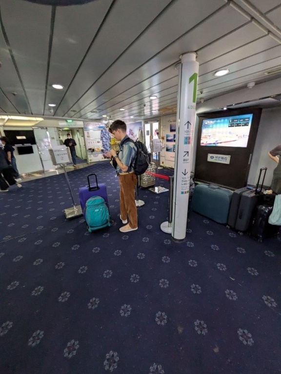 Officially, check-in was between 2:30-5:30pm. We got there around 3pm which was plenty early but it was nice to have some time to just sit. Unlike the Seoul train station and various subway stations we had been in, the ferry terminal was fairly quiet and we had lots of seats to choose from. Although as it got closer to 5:30 it definitely got louder and busier but never so much that all the seats filled up. There were ample restrooms and a water station as well.